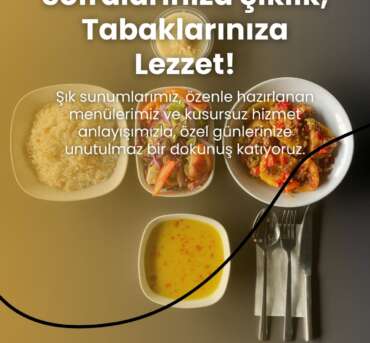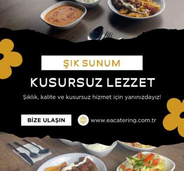 Organizasyon Hizmetleri Özel anlar, unutulmaz lezzetlerle taçlanır… EA Catering olarak; düğün, nişan, doğum günü, mezuniyet, kurumsal toplantılar, lansmanlar, bayi buluşmaları ve daha birçok organizasyonda profesyonel catering hizmeti sunuyoruz. Her etkinliğin ruhuna uygun özel menüler hazırlıyor, davetlilerinize hem görsel hem de lezzet açısından eksiksiz bir deneyim…
